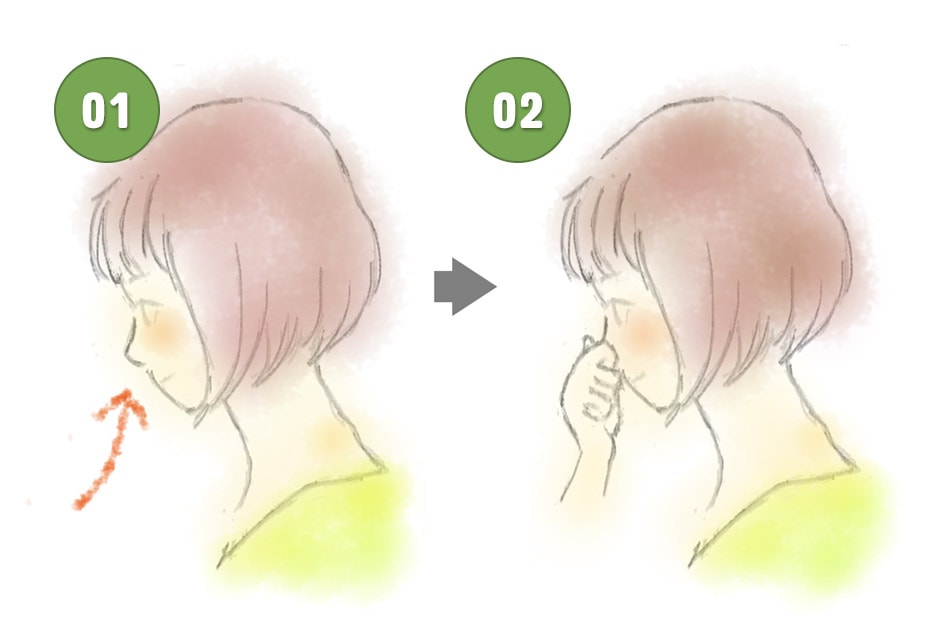 (2)鼻をつまんだ状態で息を止め、何秒の間、息を止められるか数えます。